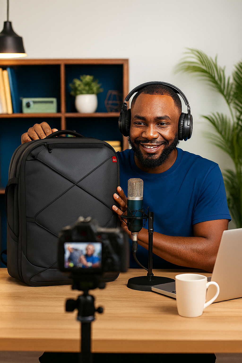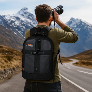 Meet Kamron – your perfect carry companion. Built tough, styled smart. Whether you're capturing moments or chasing adventures, Kamron's got your back.