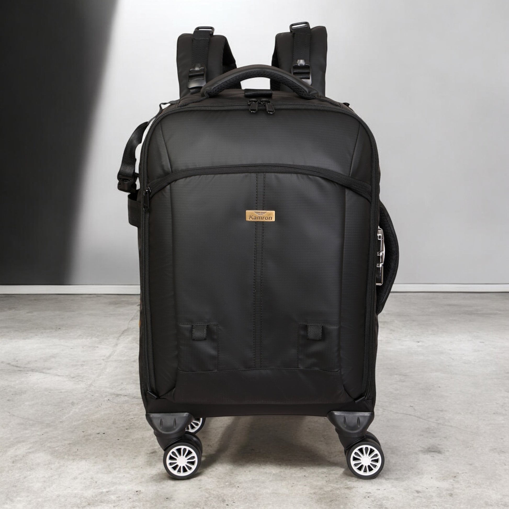 - Versatile transportation: ‘tuck-away’ advanced backpack harness plus agile four-wheel trolley.